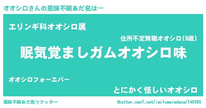 | 男性向けラノベタイトル風あだ名 | 『ノーゲーム・ノーオオシロ』 |