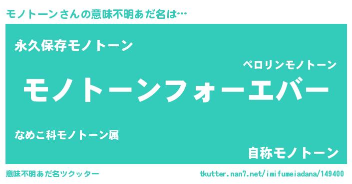 | 肩書あだ名 | 『モノトーン国家主席』『モノトーン先生』 |