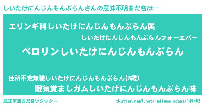 | 欧米人風あだ名 | 『マイケルしいたけにんじんもんぶらん』 |