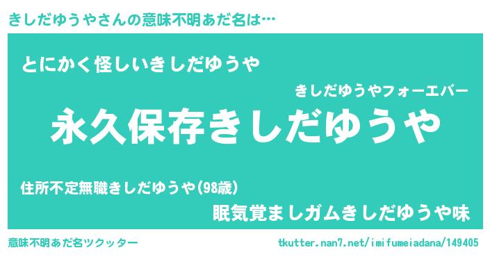 | 胡散臭い通販商品みたいなあだ名 | 『絶対に幸福をもたらす健康食品…その名も「きしだゆうや」』 |