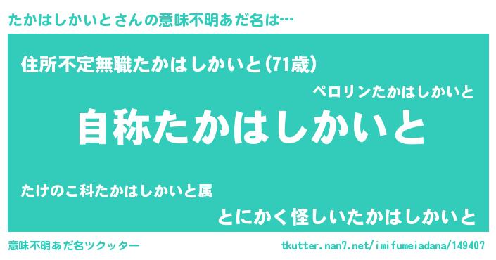 | 肩書あだ名 | 『たかはしかいと閣下』 |