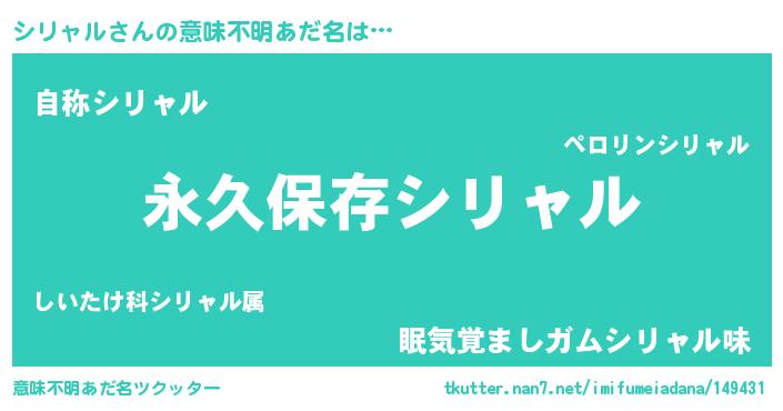 | 男性向けラノベタイトル風あだ名 | 『シリャルという概念が存在しない退屈な世界 』 |