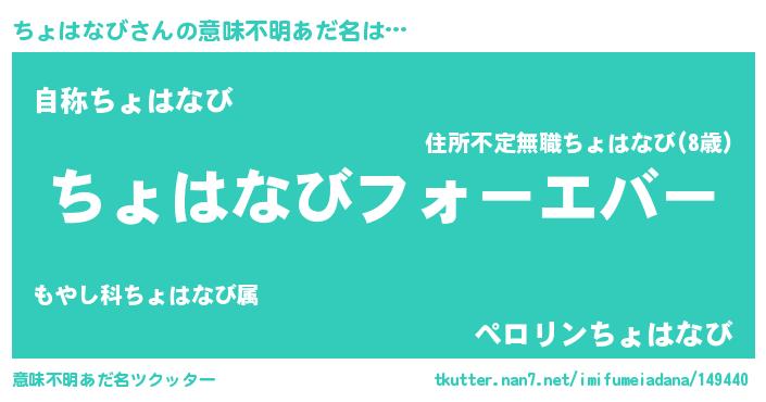 | ファンタジー風あだ名 | 『エターナルチョハナビー』『ゼチョトゥ』 |