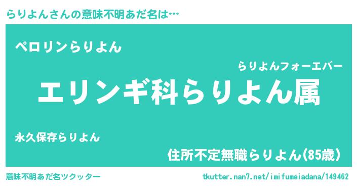 | 肩書あだ名 | 『らりよん中佐』『らりよんCEO』 |