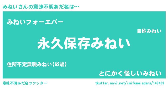 | 胡散臭い通販商品みたいなあだ名 | 『来世でも幸せになれる健康食品…その名も「みねい」』 |