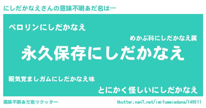 | 男性向けラノベタイトル風あだ名 | 『にしだかなえという概念が存在しない退屈な世界 』 |