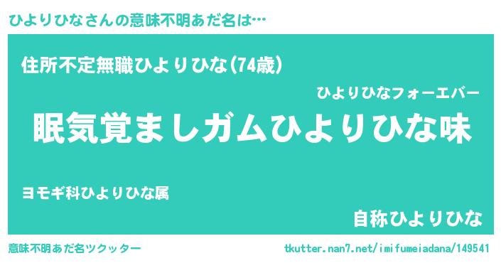 | ヒーロー風カッコイイあだ名 | 『愛の使者ひよりひな』『仮面ヒヨダー』 |