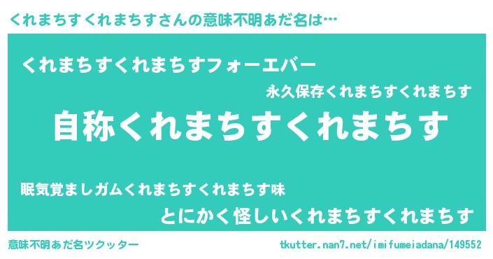 | 女子向けラノベタイトル風あだ名 | 『くれまちすくれまちすアンティーク』 |