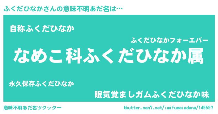 | 男性向けラノベタイトル風あだ名 | 『転生したらふくだひなかだった件』 |