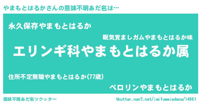 | 胡散臭い通販商品みたいなあだ名 | 『絶対に幸福をもたらす健康食品…その名も「やまもとはるか」』 |