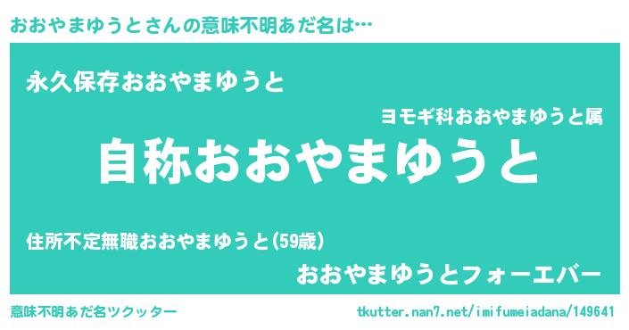 | 肩書あだ名 | 『おおやまゆうと総統』 |