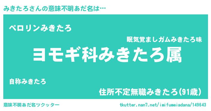 | 欧米人風あだ名 | 『みきたろ・ステッグマイヤー』 |