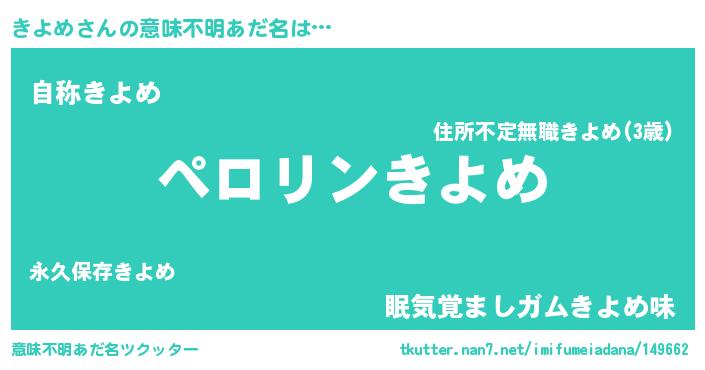 | ヒーロー風カッコイイあだ名 | 『スーパーキヨメ』『超時空戦士キヨメ』 |
