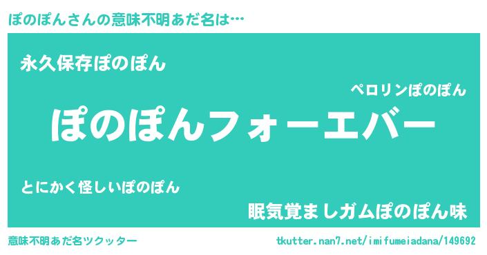 | ヒーロー風カッコイイあだ名 | 『ウルトラぽのぽんマン』『ネオポノポン』 |