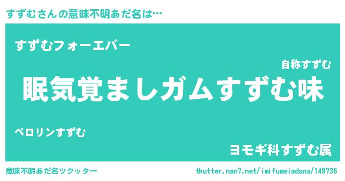 | 女子向けラノベタイトル風あだ名 | 『すずむ夫妻のなれそめ』『闇のすずむ』 |