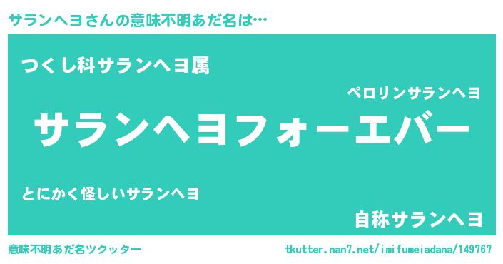 | ファンタジー風あだ名 | 『エターナルサランヘヨー』『ゼサラトゥ』 |