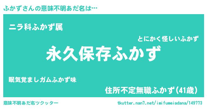 | 胡散臭い通販商品みたいなあだ名 | 『来世でも幸せになれる健康食品…その名も「ふかず」』 |