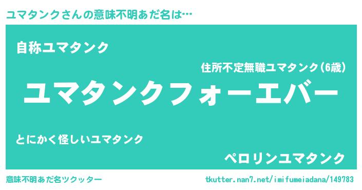 | 肩書あだ名 | 『ユマタンク総理大臣』『ユマタンク総統』 |
