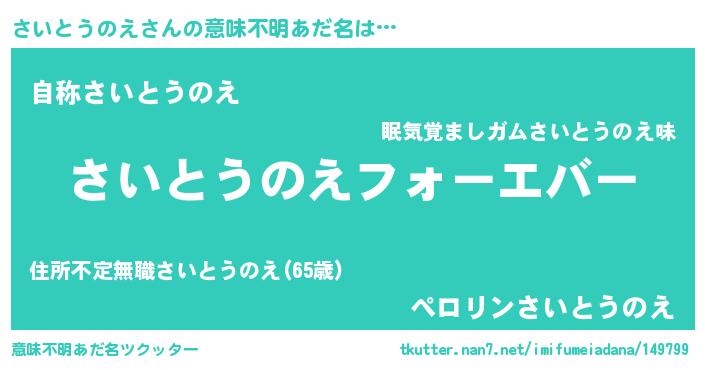 | 男性向けラノベタイトル風あだ名 | 『さいとうのえに滅ぼされるだけの簡単なお仕事です』 |