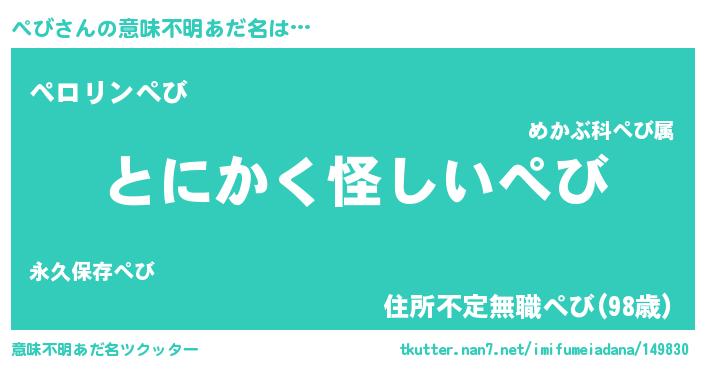 | 胡散臭い通販商品みたいなあだ名 | 『信頼と実績のサプリメント…その名も「ぺび」』 |