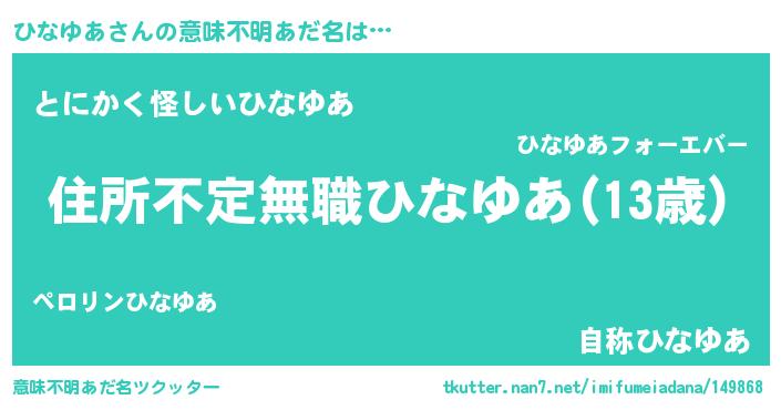 | ポケモン風あだ名 | 『ヒーナイ』『ヒヒナユア』 |