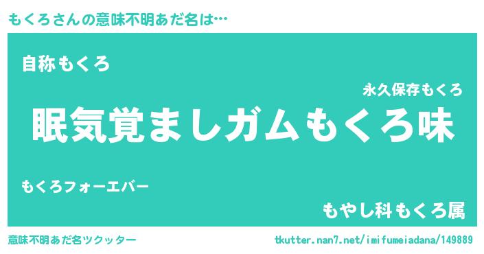| ヒーロー風カッコイイあだ名 | 『慈愛の使者もくろ』『最強戦士モクロ』 |