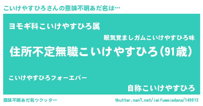 | 胡散臭い通販商品みたいなあだ名 | 『あなたにだけ特別に提供する世界で10本だけ現存している希少なブランデー…その名も「こいけやすひろ」』 |