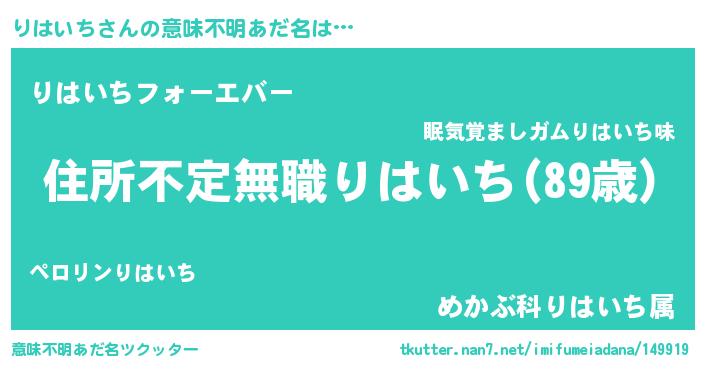 | 男性向けラノベタイトル風あだ名 | 『この素晴らしい世界にりはいちを!』 |