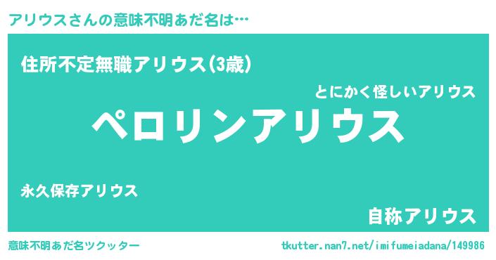 | ヒーロー風カッコイイあだ名 | 『スーパーアリウス』『仮面アリダー』 |
