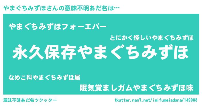 | 女子向けラノベタイトル風あだ名 | 『異世界で失敗しない100のやまぐちみずほ』 |
