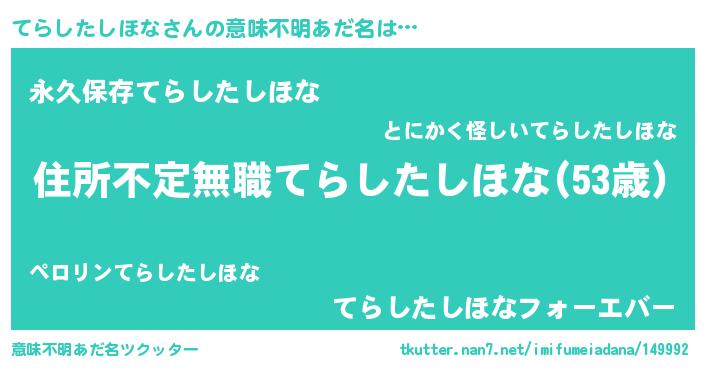 | ヒーロー風カッコイイあだ名 | 『仮面テラダー』『ネオテラシタシホナ』 |