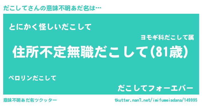 | 伝説のあだ名 | 『孤高の遊び人だこして』 |