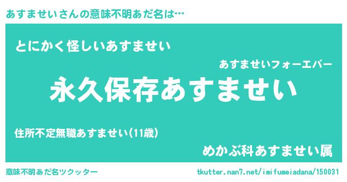 | ヘコむあだ名 | 『あすませい(笑)』『あすを』 |