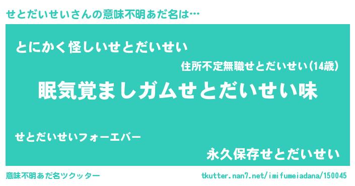 | ヒーロー風カッコイイあだ名 | 『愛の使者せとだいせい』『天弓騎士セト』 |