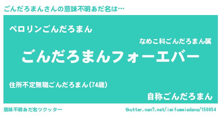 | 男性向けラノベタイトル風あだ名 | 『やはりごんだろまんの青春ラブコメはまちがっている 』 |