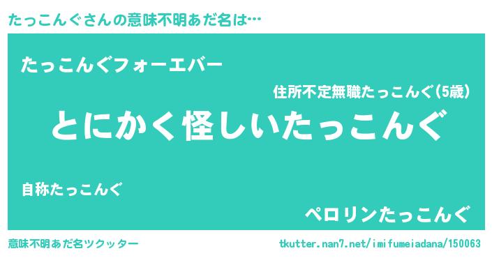 | 男性向けラノベタイトル風あだ名 | 『たっこんぐに滅ぼされるだけの簡単なお仕事です』 |