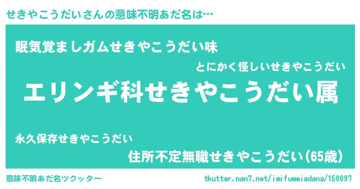 | 男性向けラノベタイトル風あだ名 | 『セキヤコウダイスレイヤー』 |