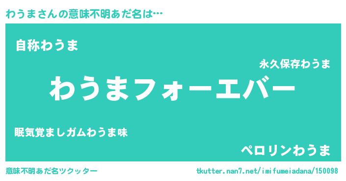 | ヒーロー風カッコイイあだ名 | 『ウルトラわうまマン』『スーパーワウマ』 |