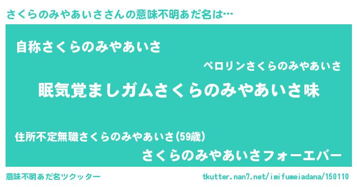 | 伝説のあだ名 | 『救世主となる錬金術士さくらのみやあいさ』 |