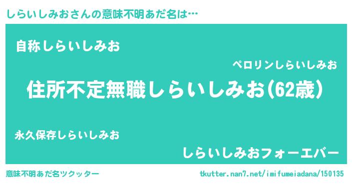 | 男性向けラノベタイトル風あだ名 | 『この素晴らしい世界にしらいしみおを!』 |