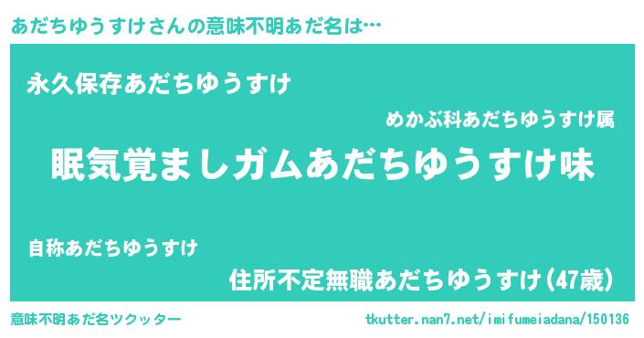 | 男性向けラノベタイトル風あだ名 | 『ノーゲーム・ノーアダチユウスケ』 |