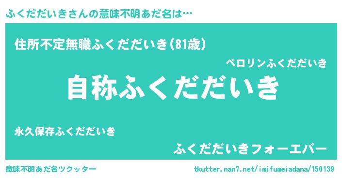 | 女子向けラノベタイトル風あだ名 | 『ふくだだいきなんてお断りですっ。』 |