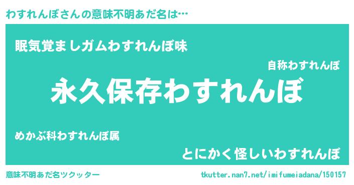 | ヒーロー風カッコイイあだ名 | 『ネオワスレンボ』『暗黒騎士ワス』 |