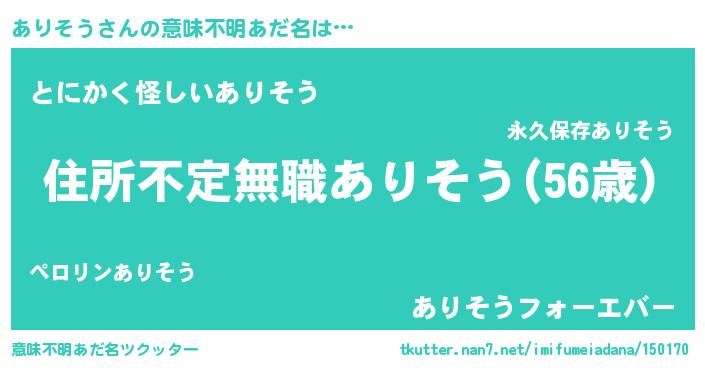 | 男性向けラノベタイトル風あだ名 | 『この素晴らしい世界にありそうを!』 |