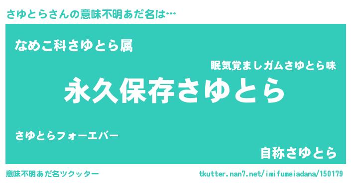 | 男性向けラノベタイトル風あだ名 | 『さゆとらという概念が存在しない退屈な世界 』 |
