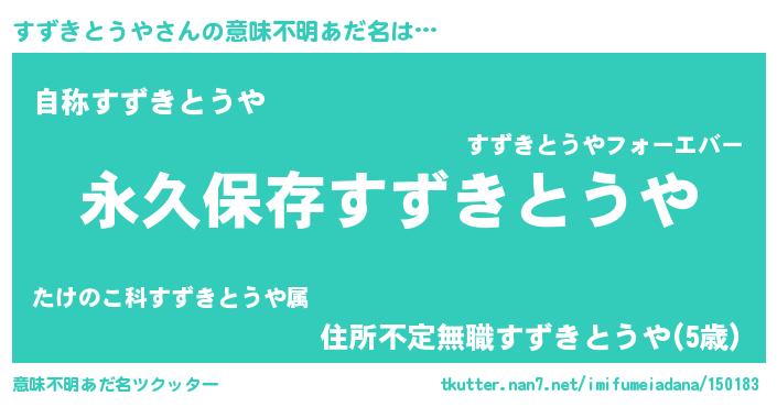 | 胡散臭い通販商品みたいなあだ名 | 『絶対に幸福をもたらす水素水…その名も「すずきとうや」』 |