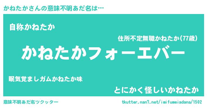 | 欧米人風あだ名 | 『かねたか・ステッグマイヤー』 |