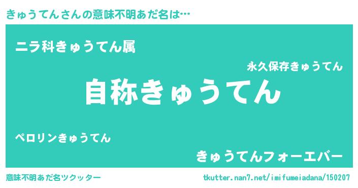 | ヒーロー風カッコイイあだ名 | 『最強戦士キュウテン』『ネオキュウテン』 |