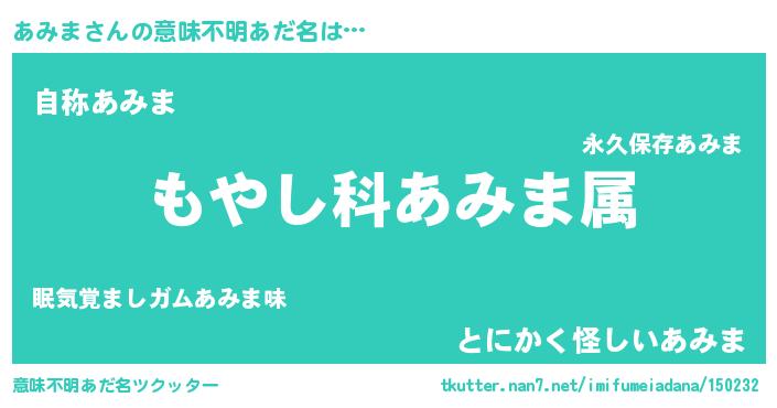 | 男性向けラノベタイトル風あだ名 | 『転生したらあみまだった件』 |