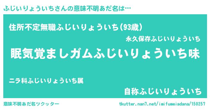 | ヘコむあだ名 | 『ふじいりょういち(笑)』『ふじぷりん』 |